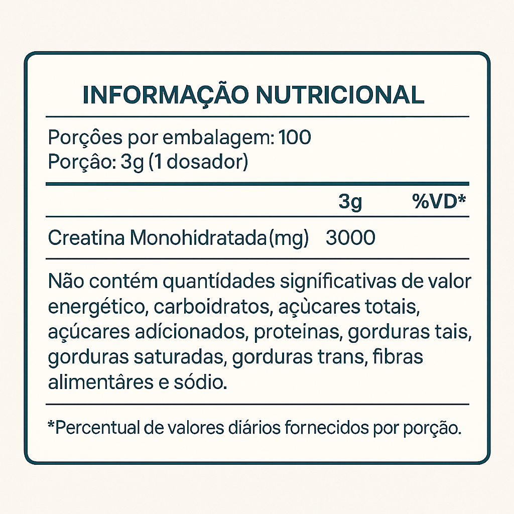 Porção de 3g (1 dosador) — Porções por embalagem: 100